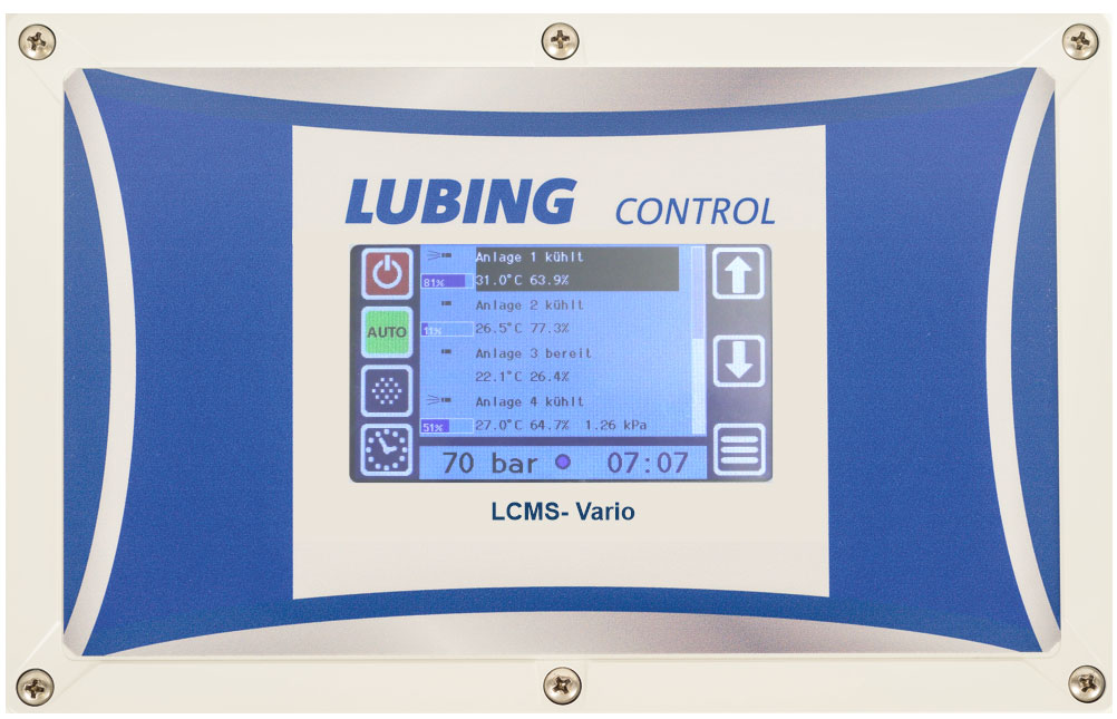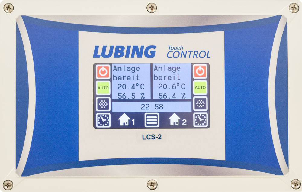 With LUBING TouchControl LCMS Vario, the LUBING TouchControl is now also available to control several sections with connection for sensors. Sensors for temperature and humidity can be connected here in two sections. With an LCMS extension box, two additional sections with sensors can be associated with each box.