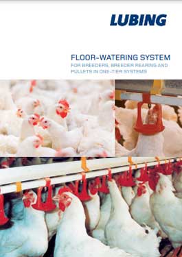 The LUBING Floor-watering system for broilers consists of the following elements: Water supply, Drinking elements, Breather unit, Suspension.