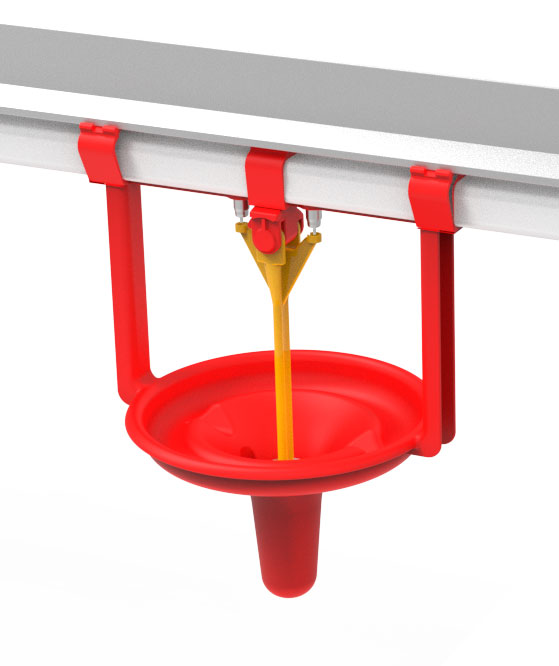 The central element of the duck drinking system is the top nipple. 4022, which ensures an optimum water flow for every animal age. The combination of nipple and drip cup provides a dry manure. The right height depends on the size of the animals: They should have to stretch slightly to reach the nipples. Every delivered system includes a height table, making it easy to find the correct height of the drinking line from the first day on.